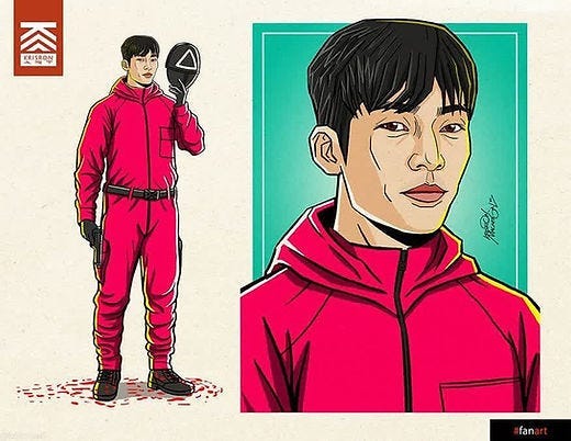 Squid Game is a Korean dystopian thriller TV show first released in 2021, featuring hundreds of deeply indebted individuals participating in a battle royale for a massive cash prize. The show examines a real world issue, Korean (and global) individuals in crushing debt, through the lens of the ‘game system’ that has grown incredibly popular through Battle Royale, The Hunger Games and video games like Fortnite.